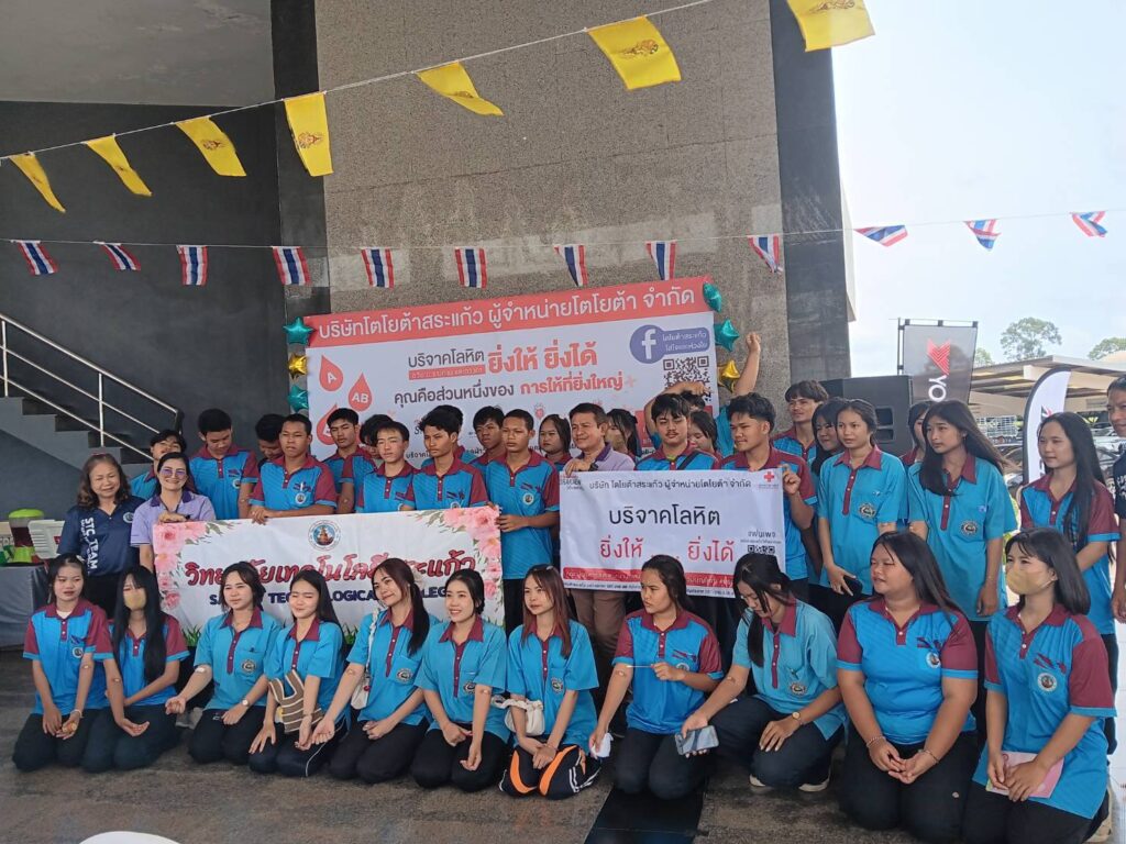 วิทยาลัยเทคโนโลยีสระแก้ว ร่วมกับ บริษัทโตโยต้า จำกัด จังหวัดสระแก้ว จัดกิจกรรม บริจาคโลหิต ภายใต้ โครงการ “บริจาคโลหิต ยิ่งให้ยิ่งได้” เพื่อร่วมส่งต่อความห่วงใยและช่วยเหลือผู้ป่วยที่ต้องการโลหิต เพื่อมอบโลหิตให้กับ โรงพยาบาลพยุพราชสระแก้ว โดยมีคณะผู้บริหาร คณะครู บุคลากรทางการศึกษา นักเรียน นักศึกษา และผู้แทนจากบริษัทโตโยต้า จำกัด จังหวัดสระแก้ว เข้าร่วมกิจกรรมด้วยจิตอาสา