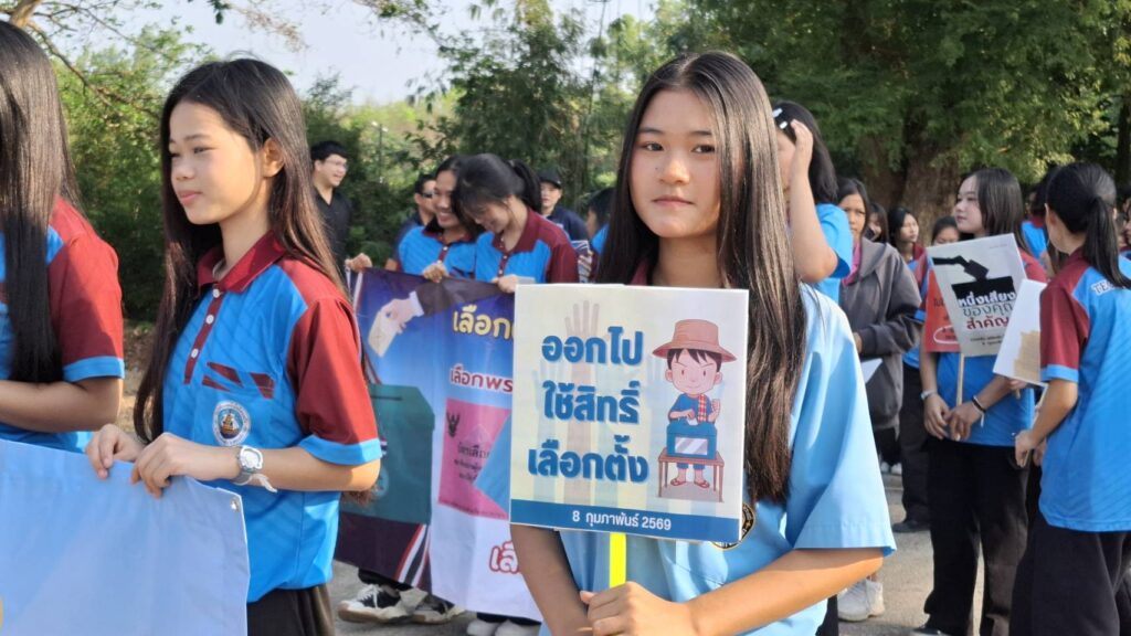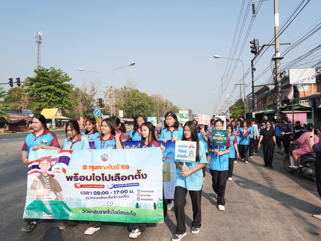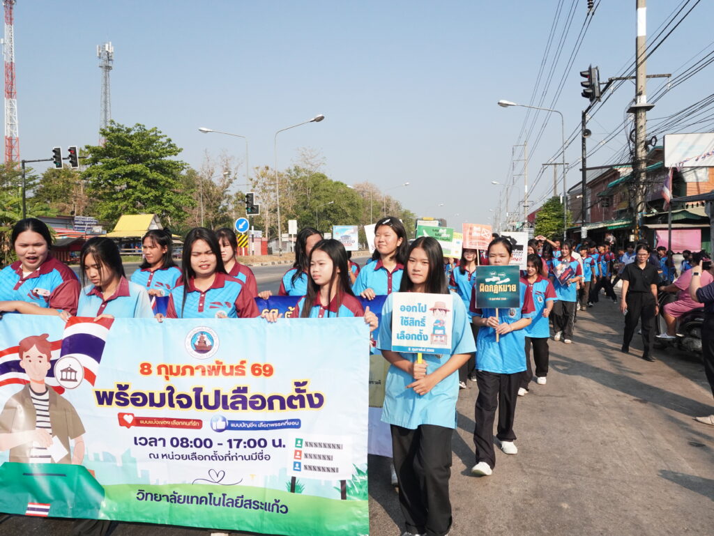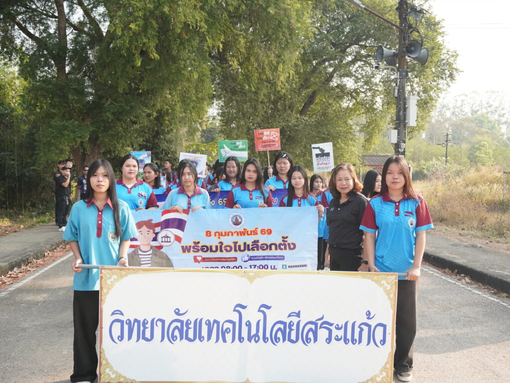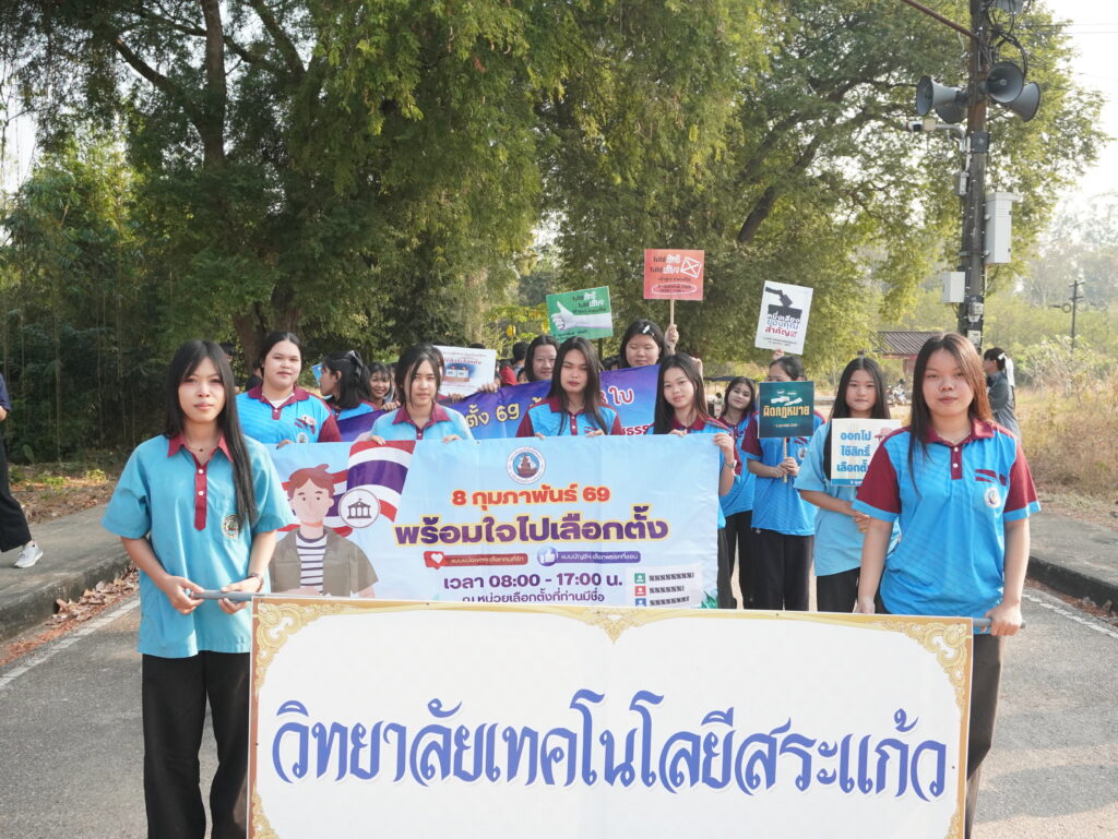 วันที่ 6 กุมภาพันธ์ 2569 คณะผู้บริหาร คณะครู ตลอดจน นักเรียน–นักศึกษา วิทยาลัยเทคโนโลยีสระแก้ว เข้าร่วม กิจกรรมรณรงค์ประชาธิปไตยในสถานศึกษา และร่วมเดินขบวนรณรงค์เชิญชวนประชาชนออกไป ใช้สิทธิ์เลือกตั้ง